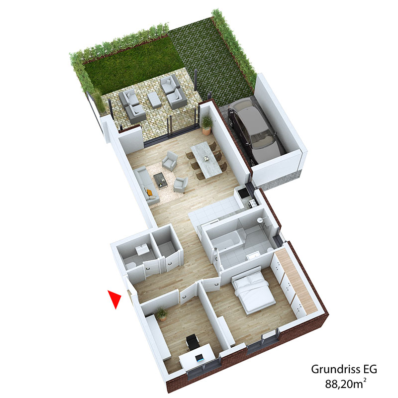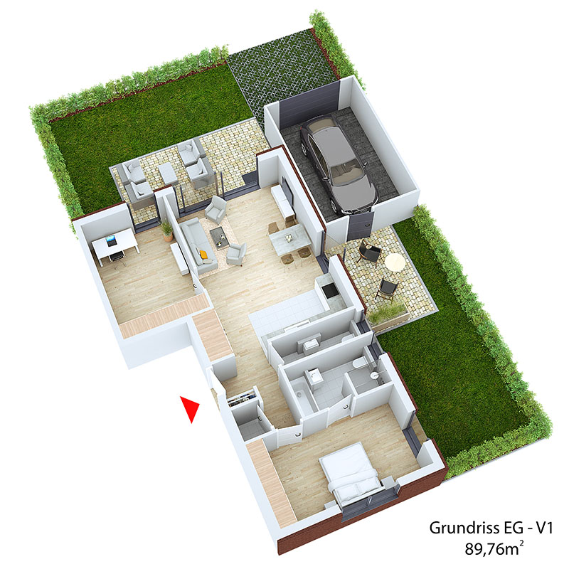 - Individuelle Planung, Bauantrag, Werkplanung und Bauüberwachung der Einfamilienhäuser